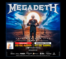 MEGADETH | THIS WAS OUR LIFE Movistar Arena Bogotá 26 Abr Dom 26 Abr MEGADETH | THIS WAS OUR LIFE Bogotá 14 Nov Vie