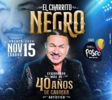 EL CHARRITO NEGRO CELEBRANDO SUS 40 AÑOS - CANCELADO CENTRO DE EVENTOS AUTOPISTA SUR - BOGOTÁ Bogotá 15 Nov Sáb 15 Nov EL CHARRITO NEGRO CELEBRANDO SUS 40 AÑOS - CANCELADO Bogotá 14 Nov Vie