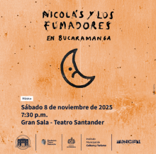 Nicolas y los Fumadores “Nochenegra” Teatro Santander Bucaramanga 8 Nov Sáb 8 Nov Nicolas y los Fumadores “Nochenegra” Bucaramanga 2 Oct Jue