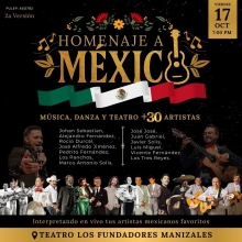 ANTOLOGÍA: HOMENAJE A MÉXICO Teatro Fundadores Manizales 17 Oct Vie 17 Oct ANTOLOGÍA: HOMENAJE A MÉXICO Manizales 2 Oct Jue