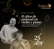 15 AÑOS DE AMISTAD EN VIOLÍN Y PIANO UNIVERSIDAD DE LA SABANA Chía 25 Abr Sáb 25 Abr 15 AÑOS DE AMISTAD EN VIOLÍN Y PIANO Chía 30 Mar Lun