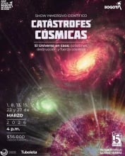 Show inmersivo científico: Catástrofes cósmicas Planetario de Bogotá Bogotá 10 Abr Vie 10 Abr Show inmersivo científico: Catástrofes cósmicas Bogotá 30 Mar Lun