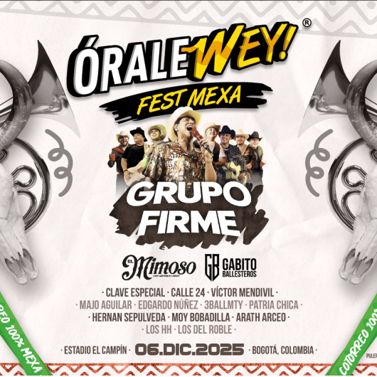 Destacados ORALE WEY | FEST MEXA Estadio El Campín Bogotá 06 Dic Sáb 06 Dic ORALE WEY | FEST MEXA - PASALA Estadio El Campín Bogotá 06 Dic Sáb 06 Dic TITO NIEVES 50 AÑOS | MI ÚLTIMO TOUR Movistar Arena Bogotá 06 Dic Sáb 06 Dic CLASICOS NAVIDEÑOS Teatro Cafam - Av. Car 68 No. 90 - 88 Bogotá Desde 06 Dic Sáb 06 Dic Hasta 07 Dic Dom 07 Dic 'Mesías', de Georg Friedrich Händel Teatro Mayor Julio Mario Santo Domingo Bogotá Desde 06 Dic Sáb 06 Dic Hasta 07 Dic Dom 07 Dic BORIS BREJCHA REFLECTIONS TOUR 2025 - MEDELLÍN Cincuentenario Medellín 06 Dic Sáb 06 Dic “La de Las Cumbiecitas Elegantes Tour 2025” - Diana Burco Teatro Santander Bucaramanga 06 Dic Sáb 06 Dic Mostrar más eventos