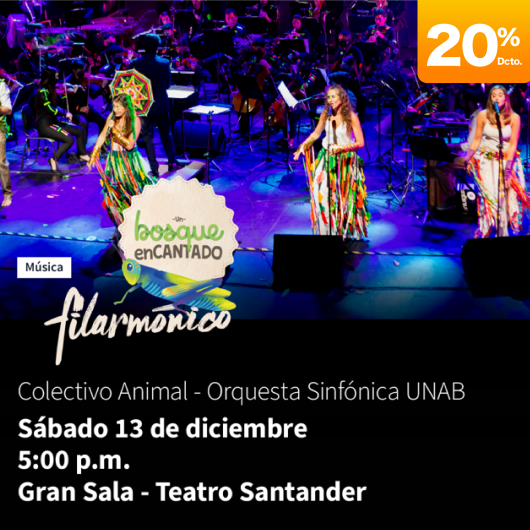 Destacados BONKA Movistar Arena Bogotá 12 Dic Vie 12 Dic 'Cascanueces' - Incolballet, Colombia Teatro Mayor Julio Mario Santo Domingo Bogotá Desde 12 Dic Vie 12 Dic Hasta 14 Dic Dom 14 Dic Los Mirlos Centro Nacional de las artes - Sala Teatro Colón cll10 #5-32 Bogotá 12 Dic Vie 12 Dic J BALVIN MADE IN BOGOTÁ Estadio El Campín Bogotá 13 Dic Sáb 13 Dic ¡ ARRE, BORRIQUITA! DESDE ENTONCES Y POR SIEMPRE... UNIVERSIDAD DE LA SABANA Chía 13 Dic Sáb 13 Dic Un bosque encantado Filarmónico Teatro Santander Bucaramanga 13 Dic Sáb 13 Dic J BALVIN MADE IN BOGOTÁ - PÁSALA Estadio El Campín Bogotá 13 Dic Sáb 13 Dic Mostrar más eventos