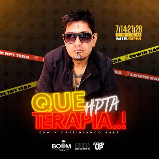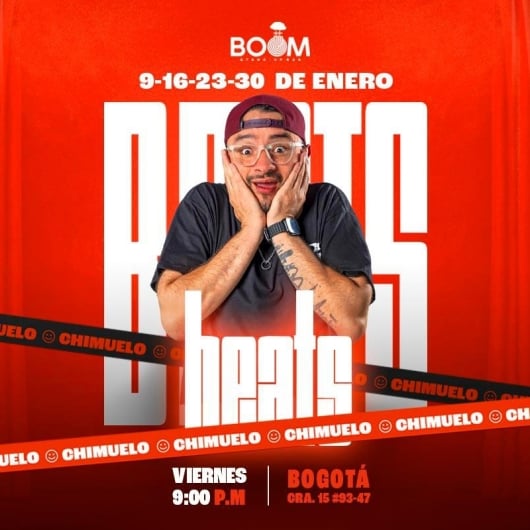 Destacados EL MINUTO DE JUAN Boom Stand Up Bar - Bogotá Bogotá Desde 07 Ene Mié 07 Ene Hasta 28 Ene Mié 28 Ene QUE HPTA TERAPIA Boom Stand Up Bar - Bogotá Bogotá Desde 07 Ene Mié 07 Ene Hasta 28 Ene Mié 28 Ene BEATS Boom Stand Up Bar - Bogotá Bogotá Desde 09 Ene Vie 09 Ene Hasta 30 Ene Vie 30 Ene NO ME DEJAN MENTIR Boom Stand Up Bar - Bogotá Bogotá Desde 09 Ene Vie 09 Ene Hasta 30 Ene Vie 30 Ene GORDCONSEJOS Boom Stand Up Bar - Bogotá Bogotá Desde 13 Ene Mar 13 Ene Hasta 27 Ene Mar 27 Ene LA LETRA CON SARCASMO ENTRA BOOM STAND UP BAR - Cl. 26 #43g-30 BARRIO COLOMBIA Medellín 15 Ene Jue 15 Ene OPEN MIC (ENERO) BOOM STAND UP BAR - Cl. 26 #43g-30 BARRIO COLOMBIA Medellín Desde 21 Ene Mié 21 Ene Hasta 28 Ene Mié 28 Ene Mostrar más eventos Movistar Arena Dg. 61c #26-36, Teusaquillo Teatro Julio Mario Santodomingo Cl. 170 #67-51 Teatro Colsubsidio Av. El Dorado #25-40, Bogotá Maloka Centro Interactivo Maloka, Cra. 68d #24A - 51 Teatro CAFAM Ak 68 #90 - 88 Centro Nacional de las Artes Cl. 11 #5 - 60 Teatro Metropolitano Cl. 41 # 57 - 30, La Candelaria, Medellín. Teatro El Tesoro Carrera 25A # 1A Sur - 45 Medellín. Teatro El Ensueño Tv. 70 D #60-90, Sur, Bogotá Teatro Jorge Eliécer Gaitán Cra. 7 #22-47, Santa Fé, Bogotá. Teatro La Concha Calle 4 #10-48, Cali