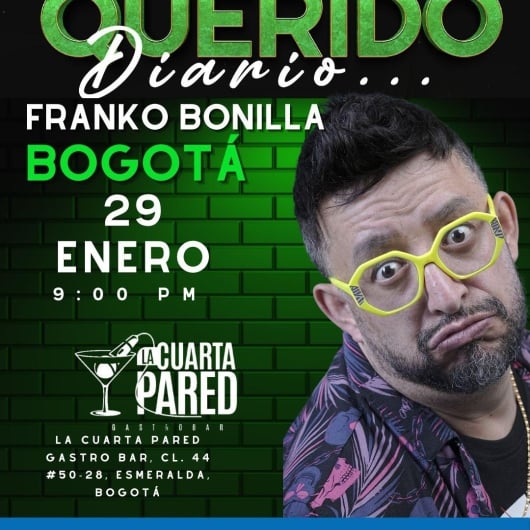 Destacados MANTENER EL JUICIO Teatro Petra Bogotá Desde 21 Ene Mié 21 Ene Hasta 31 Ene Sáb 31 Ene LA PELOTA DE LETRAS Teatro Cafam - Av. Car 68 No. 90 - 88 Bogotá Desde 23 Ene Vie 23 Ene Hasta 31 Ene Sáb 31 Ene FUCKS NEWS NOTICREO - PEREIRA Teatro Santiago Londoño Pereira 28 Ene Mié 28 Ene ENTRE LAS PARTES - BOGOTÁ Boom Stand Up Bar - Bogotá Bogotá 29 Ene Jue 29 Ene SPANGLISH - MEDELLÍN BOOM STAND UP BAR - Cl. 26 #43g-30 BARRIO COLOMBIA Medellín 29 Ene Jue 29 Ene QUERIDO DIARIO (29ENE) La Cuadra Pared Gastro Bar - Calle 44 # 50-28 Bogotá 29 Ene Jue 29 Ene PRIMO GENITALS Teatro Municipal Gildardo Tovar Tebaida 29 Ene Jue 29 Ene Mostrar más eventos Movistar Arena Dg. 61c #26-36, Teusaquillo Teatro Julio Mario Santodomingo Cl. 170 #67-51 Teatro Colsubsidio Av. El Dorado #25-40, Bogotá Maloka Centro Interactivo Maloka, Cra. 68d #24A - 51 Teatro CAFAM Ak 68 #90 - 88 Centro Nacional de las Artes Cl. 11 #5 - 60 Teatro Metropolitano Cl. 41 # 57 - 30, La Candelaria, Medellín. Teatro El Tesoro Carrera 25A # 1A Sur - 45 Medellín. Teatro El Ensueño Tv. 70 D #60-90, Sur, Bogotá Teatro Jorge Eliécer Gaitán Cra. 7 #22-47, Santa Fé, Bogotá. Teatro La Concha Calle 4 #10-48, Cali