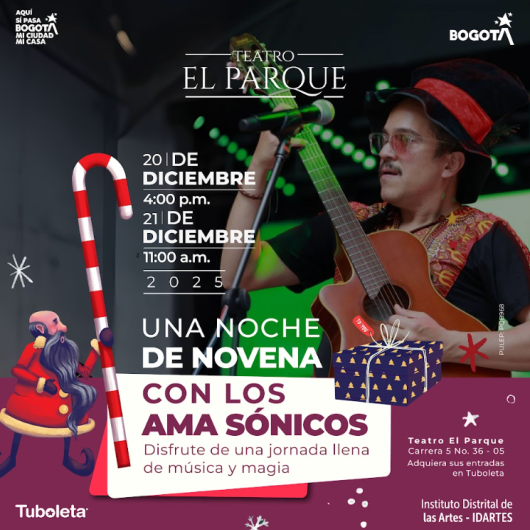 Una Noche de Novena con los Ama-Sónicos Teatro El Parque Bogotá Desde 20 Dic Sáb 20 Dic Hasta 21 Dic Dom 21 Dic