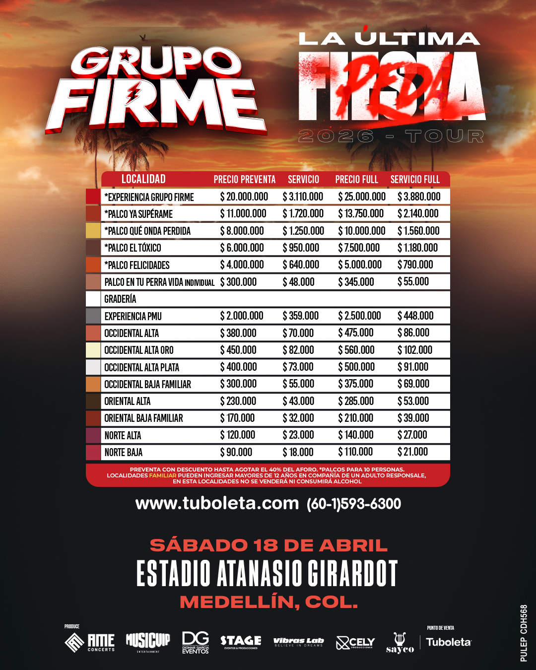 | Experiencia Grupo Firme* | $2.500.000 + $388.000 | 2.380 |