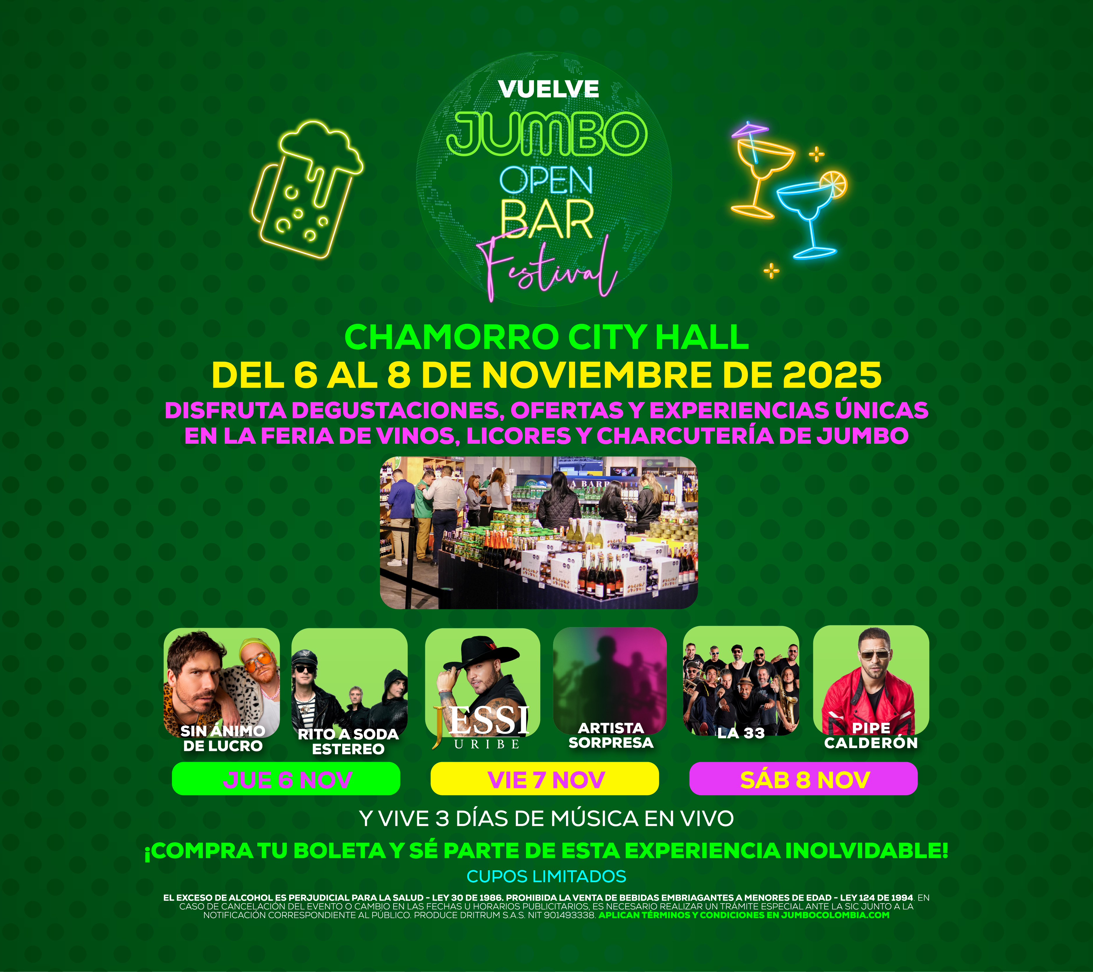 La feria más esperada del año Jumbo Open Bar regresa con una propuesta única. Durante tres días inolvidables, los amantes del buen vivir podrán disfrutar de un recorrido sensorial que reúne lo mejor en licores, vinos, charcutería gourmet y experiencias exclusivas de marca.
